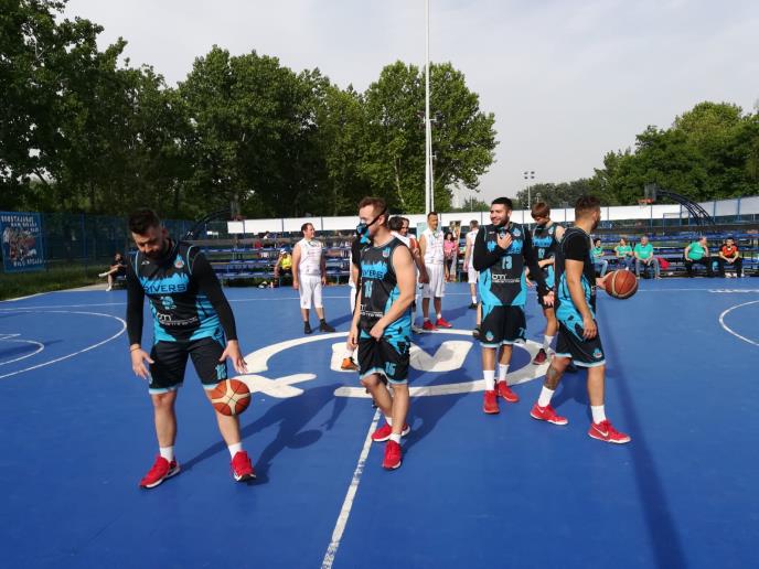 Rezultat meča, na sportskim terenima Ade Ciganlije u Beogradu, nije bio u prvom planu već mogućnost igranja košarke uz specijalne zelene maske.