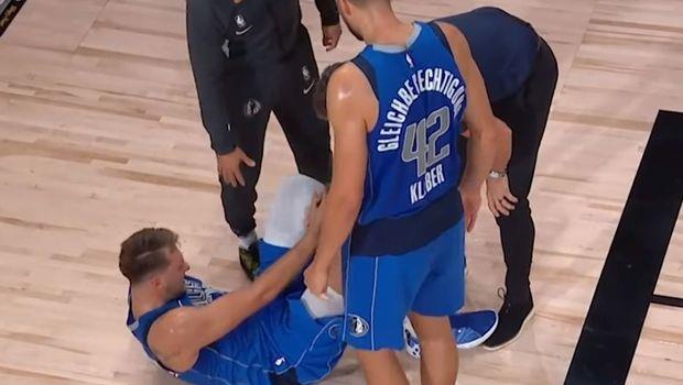 Četiri minuta pre kraja treće deonice Dončić se sudario kolenom sa Kavajem Lenardom koji je krenuo u prodor sa strane i poslao je povratnu loptu van reketa, a Dončić je sa bolnom grimasom na licu pao na parket.
