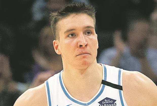 Bogdan Bogdanović nije propustio priliku da pozdravi novog centra Partizana i doskorašnjeg košarkaša rezervnog tima Sakramenta Erika Miku.