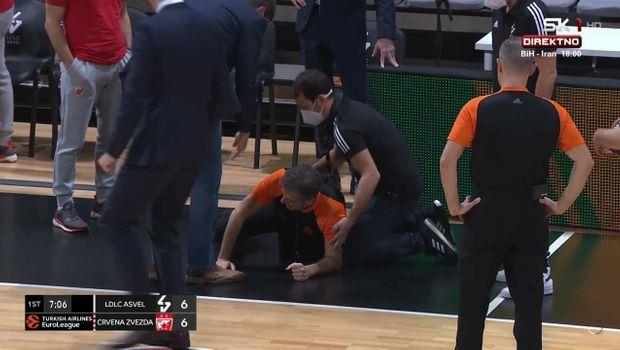 Jedan igrač Asvela je pokušao da zaustavi prodor, zaleteo se u nesrećnog arbitra, koji je u padu udario glavom o parket.