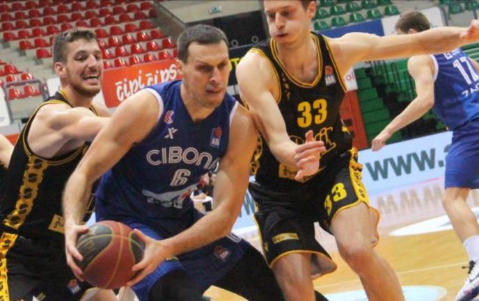 Košarkaši Splita pobedili su večeras u gostima Cibonu sa 76:74 (17:19, 19:17, 19:19, 21:19), 19. kolu regionalne ABA lige.