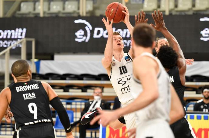 Košarkaši Partizana su poslednju četvrtinu započeli s boljom energijom, prišli su na 11 poena zaostatka, ali su potom ponovo stali, pa je Trento bez problema priveo meč kraju.