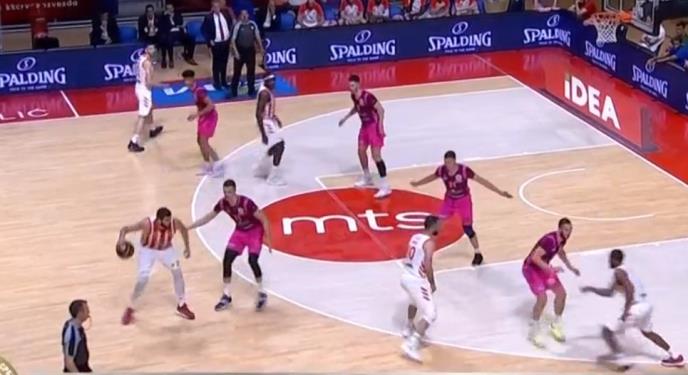9. minut - Dobrić postiže četvrtu trojku za Zvezdu - 26:14.