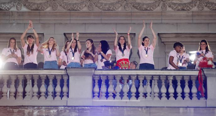Članovi stručnog štaba i igračice uz ovacije navijača izlaze na balkon