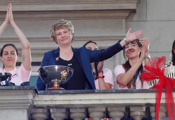 Ispod balkona Skupštine grada izabranice selektorke Marine Maljković dočekao je veliki broj navijača.
