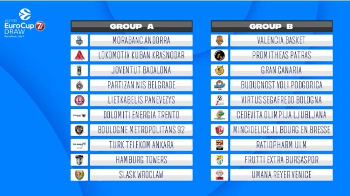Grupa B: Valensija, Promiteas, Gran Kanarija, Budućnost, Virtus Bolonja, Cedevita Olimpija, Burg, Ulm, Bursaspor i Venecija.
