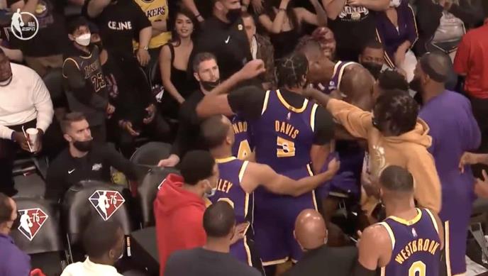 Košarkaši Lejkersa Entoni Dejvis i Dvajt Hauard ušli su u klinč u toku meča, toliko da je malo nedostajalo da se potuku.