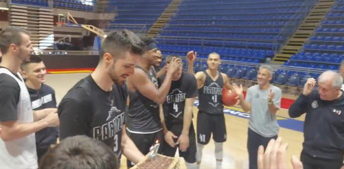 Kapite Rade Zagorac je u dvoranu uneo tortu, a Avramoviću u čast tim predvođen trenerom Željkom Obradovićem je otpevao rođendansku pesmu.
