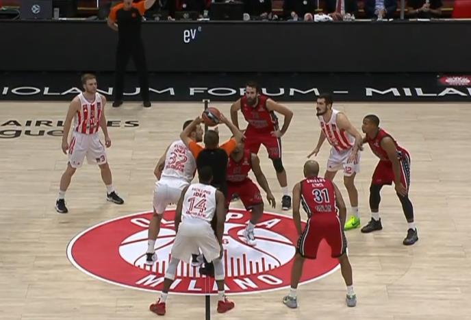 19. minut - Previše ofanzivnih skokova domaćina, Mitoglu je precizan - 38:25. Lepa kombinacija domače ekipe, Hajns pogađa za dva - 40:25. Milanezi su praktično za deset sekundi anulirali sve ono što je Zvezda gradila u prethodnim minutama.