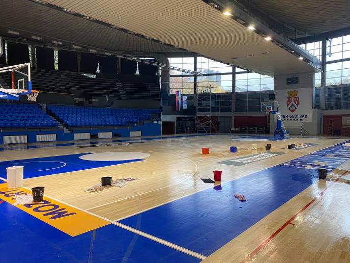Krov na novobeogradskoj dvorani popustio, pa je zbog velike količine vode na parketu utakmica morala da bude odložena.