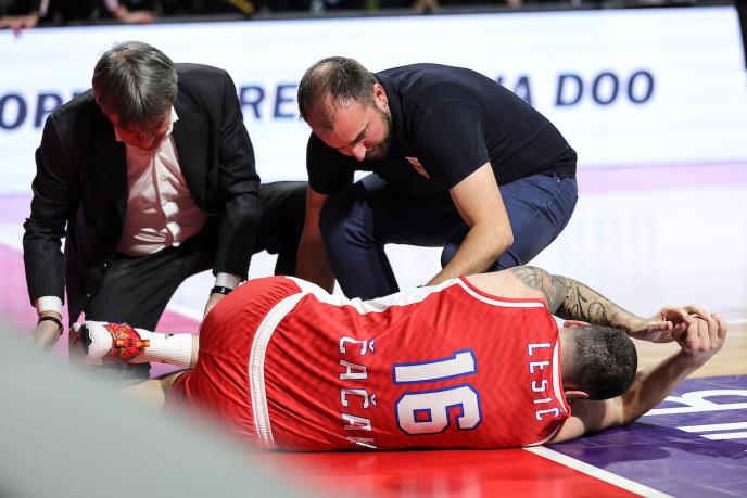 Sava Lešić je pri doskoku, nezgodno nagazio i izgleda doživeo tešku povredu kolena.