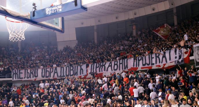 Navijači Crvene zvezde početkom poslednjeg kvartala izbacili na ogroman transparent na kome je pisalo:
