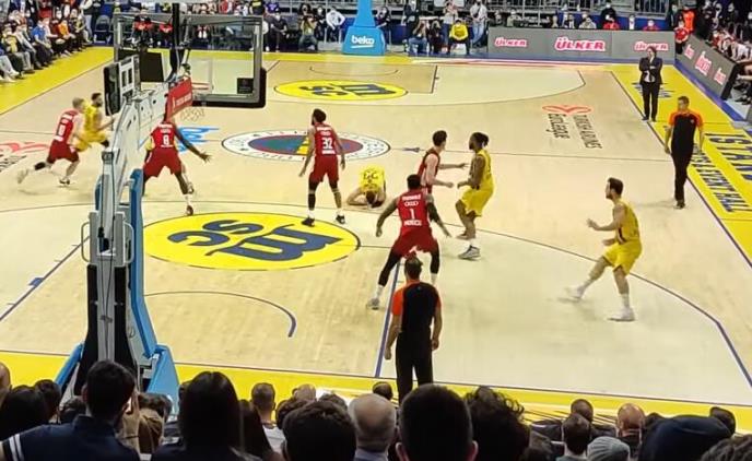 Bek Fenerbahčea se povredio u završnici prvog poluvremena kada je završio na parketu uz bolnu grimasu.