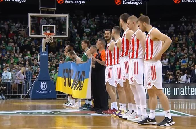 Navijači domaće ekipe burno su reagovali kada su videli da košarkaši Crvene zvezde ne drže baner u bojama ukrajinske zastave sa porukom "zaustavite rat", a osude i uvrede za crveno-bele su stizale sa svih strana na društvenim mrežama.