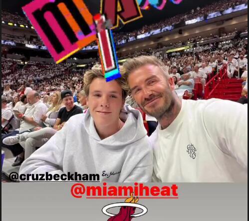 Bekam obožava košarku, a početak prve runde plej-ofa u NBA ligi iskoristio je da sa sinom Kruzom i ćerkom Harper Seven gleda košgeterski obračun našeg Bogdana Bogdanovića i Majamijevog asa Džimija Batlera.