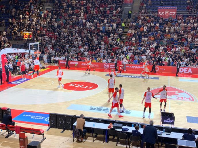 Naime, jedan navijač Crvene zvezde je izbačen iz hale! Tek kada je u pratnji policije napustio halu, utakmica je nastavljena. Crvena zvezda i Partizan igraju prvu utakmicu u finalnoj seriji ABA lige, u kojoj će novi šampion biti ekipa koja ostvari tri pobede.