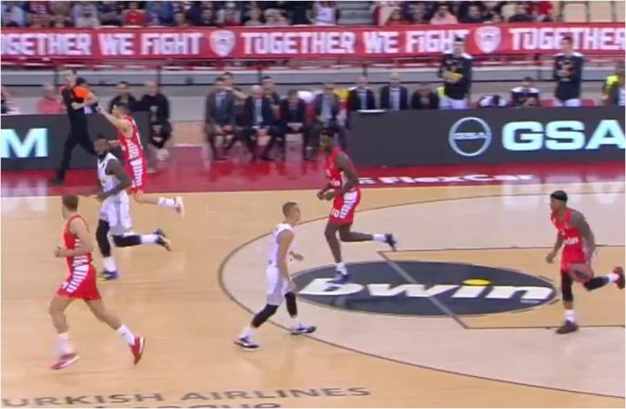 5. minut - Panter pogađa svoje prve poene u tranziciji - 11:4. Papanikolau postiže drugu trojku za Olimpijakos - 14:4.