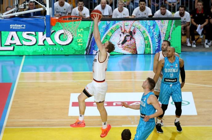 Košarkaška reprezentacija Slovenije pobedila je na svom terenu Nemačku sa 81:75 (16:24, 25:10, 20:14, 20:27) i tako obezbedila vizu za Svetsko prvenstvo 2023. godine.