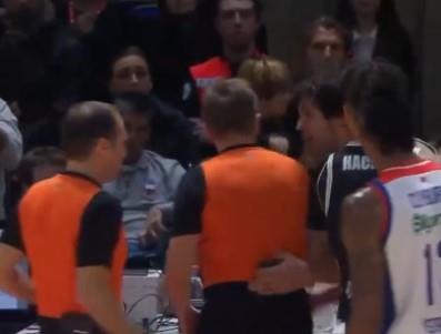 Tada je Teodosić hteo da se zaleti na sudije, ali su ga saigrači zaustavili.