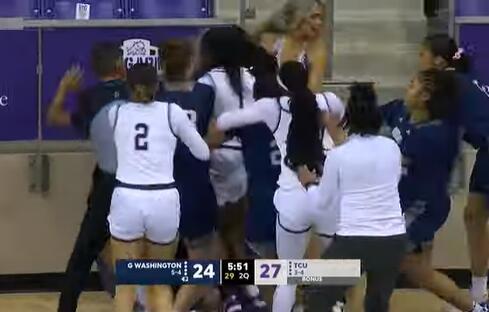 Tokom meča došlo je do žestokog fizičkog obračuna košarkašica ovih timova. Sve je počelo nakon duela Esens Braun iz Džordž Vašingtona i Bele Krevens iz TCU. U borbi za loptu došlo je do jačeg kontakta, Braunova je obezbedila posed, a njena rivalka je krenula da se vraća u odbranu. Međutim, ubrzo se predomislila... Nije poznato da li joj je Braunova nešto dobacila, ali nešto je žestoko isprovociralo Belu koja je rešila da se fizički obračuna sa protivnicom. Počele su da sevaju pesnice, a ubrzo su se u sukob umešale i saigračice koje su u prvi mah želele da razdvoje igračice. Bilo je žestokih udaraca, čupanja za kosu, vriske...