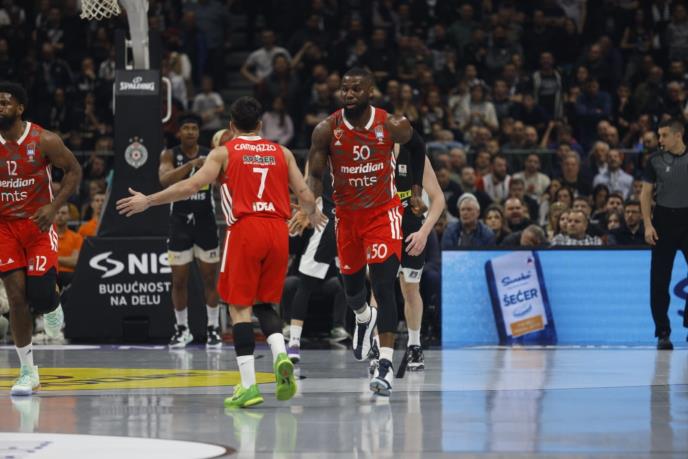 U toku je utakmica 21. kola ABA lige, večiti derbi između Partizana i Crvene zvezde.