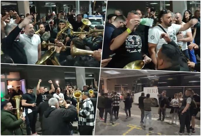 LUDA ŽURKA POSLE VELIKE POBEDE PARTIZANA - LETELI EVRIĆI: Trubači dočekali Žoca i igrače, košarkaši Reala u neverici gledali FEŠTU