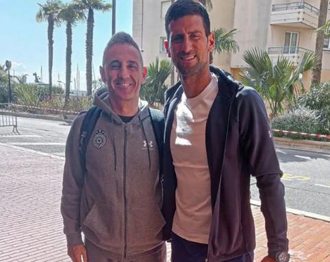 Najbolji teniser sveta Novak Đoković nalazi se u Monaku gde za koji dan počinje učešće na teniskom turniru, a boravak u Kneževini iskoristio je i za posetu košarkašima Partizana koji večeras (21.00) igraju odlučujući meč u Evroligi.