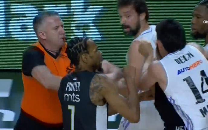 Sudije meča Real - Partizan donele su odluku da se utakmica 2. kola plej-of faze prekine posle opšte tuče i da se pobeda dodeli Partizanu.