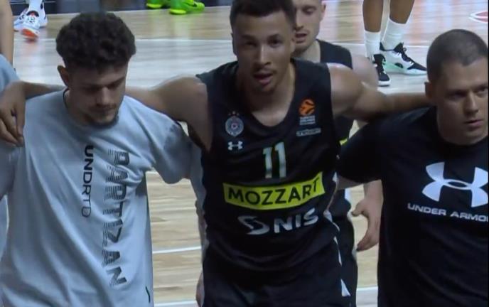 Košarkaš Partizana Dante Eksum zadobio je teže povrede tokom tuče na utakmici Real - Partizan.