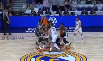 Minut i 40 sekundi pre kraja utakmice došlo je do velike tuče na terenu, nakon što je Ljulj napravio grublji prekršaj na Panteru, koji je odgovorio. Igrač Reala Geršon Jabusele je posle toga naleteo na Pantera, a zatim je rvačkim zahvatom oborio Egzuma, koji je povredio skočni zglob leve noge, a zaradio je i veliku posekotinu na ramenu. ;Jabusele je odmah istrčao sa terena i otišao u svlačionicu.