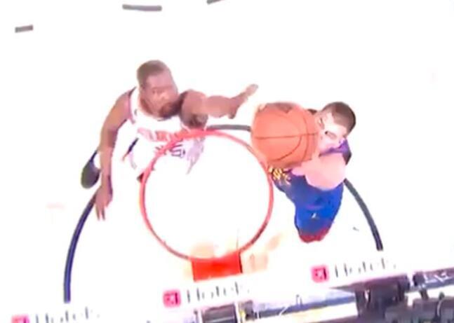U jednoj kontri domaćeg tima Marej je bacio loptu Jokiću koji se sjurio ka košu Finiksa i efektno zakucao, a čitavu sliku ulepšao je Durent koji je pokušao da blokira pokušaj Srbina. Nije uspeo, pa je završio na popularnom "posteru".