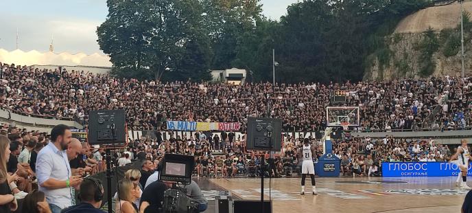 Na meču Partizan - Fuenlabrada istakanut je transparent zahvalosti Rumunima i to na njihovom jeziku.