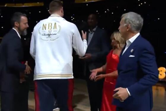 Jokić je izašao sa osmehom na licu, srdačno se pozdravio sa komesarom NBA lige Adamom Silverom, uzeo svoj prsten i nastavio da se pozdravlja sa ostalim čelnicima lige koji su prisustvovali ceremoniji. Tom prilikom zabeležena je jedna zanimljiva scena.