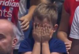 Kamera je uhvatila ovog simpatičnog dečaka koji nije mogao da gleda napad odluke, pa je prekrio rukama oči. Nakon spektakularne trojke Jaga oduševljeno je podigao ruke u vis, a njegova simpatična reakcija raspametila je pristalice crveno-belih.