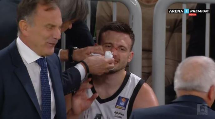 Naime Aleksa Avramoviću je u jednoj akciji domaće ekipe razbijen nos.