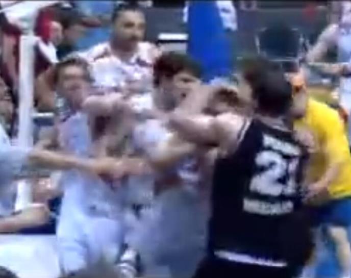 Ubrzo su im se pridružili i ostali, te je na terenu nastala opšta makljaža. Sudije su poslale skoro sve igrače u svlačionicu, a završnicu meča pomenuti klubovi su odigrali sa po trojicom košarkaša, pa su Roberts, Mekejleb i Veseli bili bolji od Hila, Markovića i Krstovića.