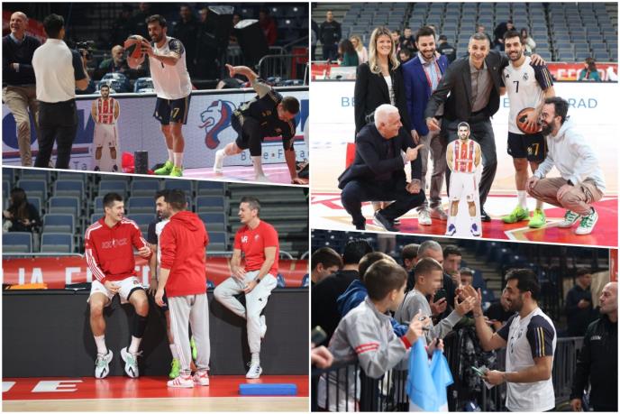 Bilo je posebno zanimljivo kada je Faku došao do svojih nekadašnjih igrača, seo na reklamne banere, a crveno-beli ga okružili.