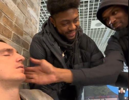 Narodski rečeno, namestio se na zicer svojim saigračima. Kapiten ekipe Kevin Panter, uz pomoć Bruna Kabokla, koji je bio zadužen za snimanje, odlučio je da se našali sa Anđušićem. Prišao mu je i probudio ga ćuškom. Naravno, sve su kroz šalu ispratili.
