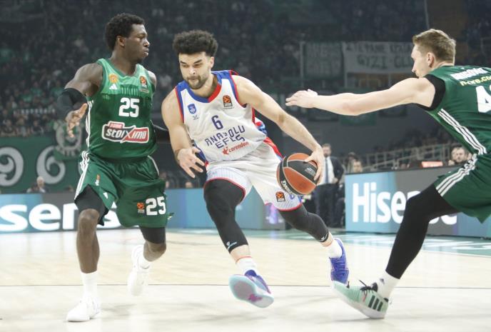 Košarkaši Panatinaikosa pobedili su večeras na svom terenu ekipu Efesa sa 83:76 (25:14, 26:21, 17:22, 15:19), u utakmici 20. kola Evrolige.