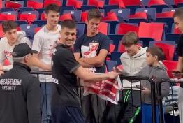 Njega su najmlađi navijači dočekali sa velikim oduševljenjem, i od njega su imali jedan zahtev. Želeli su klinci da im se Vanja potpiše na dres, što je sjajni košarkaš bez oklevanja i uradio.