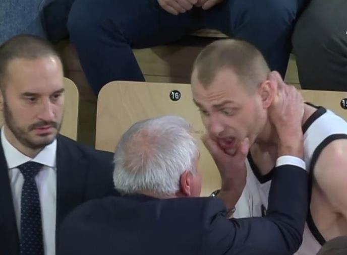 Nisu crno-beli baš sjajno ušli u meč, dosta greše što posebno ljuti Željka Obradovića. Jednu takvu grešku Alena Smailagića koji u napadu bio na pogrešnom mestu Žoc je kaznio izvođenjem iz igre.
