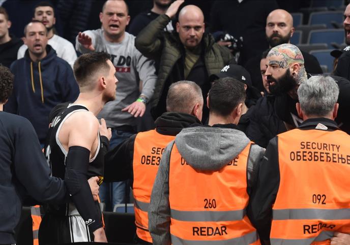 Košarkašima Partizana su upućene uvrede sa tribina, a čak je žandarmerija morala da ih štiti. U jednom trenutku je zabeležen i trenutak kada je Mateuš Ponitka bio u sukobu sa jednim navijačem specifičnog izgleda.