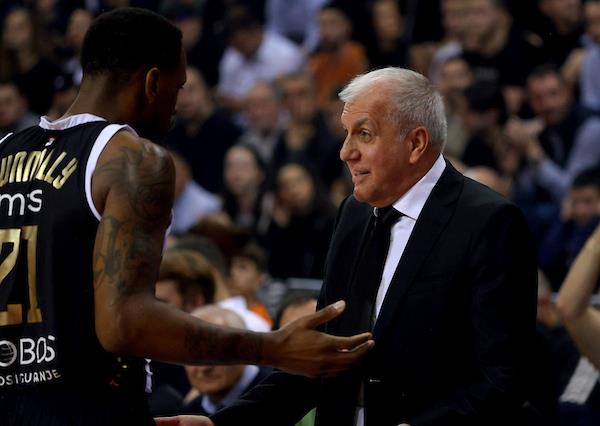 Košarkaši poraženog tima, pognute glave posle dodele medalja krenuli su ka svlačionici kada ih je trener Željko Obradović zaustavio i rekao im da ostanu do kraja ceremonije dodele medalja na parketu.