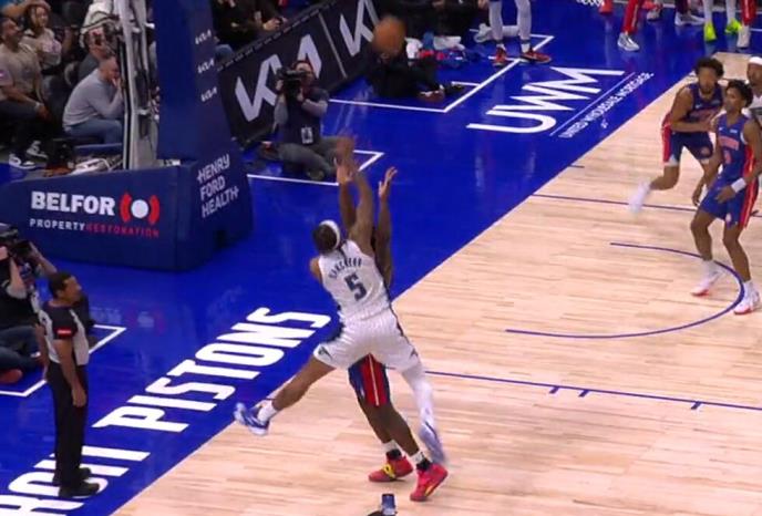 Bankero je primio loptu iz auta na 12 sekundi do kraja utakmice pri nerešenom rezultatu i potom odigrao "1 na 1" sa defanzivcem Detroita.