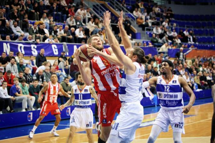 Košarkaši Crvene zvezde deklasirali su Mornar u Baru sa 102:66 u meču 21. kola Aba lige.