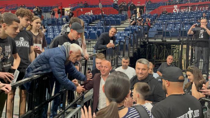 Na oduševljenje Grobara, u hali se pojavio juče smenjeni trener fudbalskog kluba Igor Duljaj.