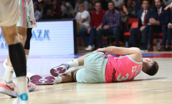 Košarkaš beogradskog tima posle nezgodnog doskoka završio je na parketu i dugo ostao da leži.