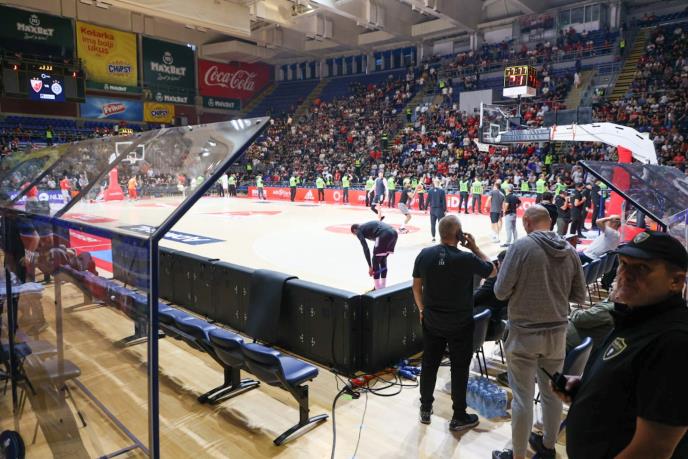 Veoma je napeto u hali gde su pristalice crveno-belog kluba već počele sa prozivkama na račun igrača Partizana koji se zagrevaju na parketu.