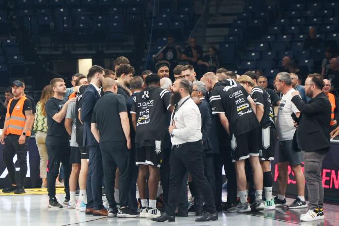 " Utakmica je prekinuta pri rezultatu za 57:45 za Partizan. Više detalja će biti saopšteno naknadno", objavili su iz Partizana.