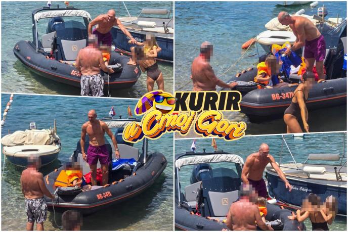 Njegova žena na sebi je imala crni jednodelni kupaći dok je on imao ljubičasti ṣ̌orts. Deca su jedva čekala da su ukrcaju na čamac i krenu da plove morem.